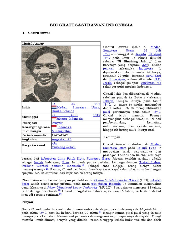 Profil Asrul Sani Sastrawan Terupdate. Sebagai sastrawan ia termasuk ke dalam kelompok sastrawan angkatan '45. Semasa hidupnya ia adalah seorang sastrawan sekaligus sutradara film yang cukup sukses.