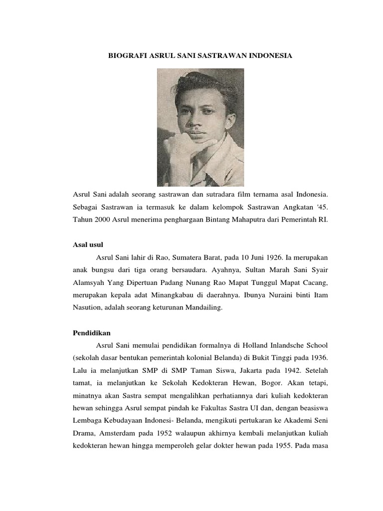 Get in touch with asrul sani (@asrul_sn) — 765 answers, 137 likes. Semasa hidupnya ia adalah seorang sastrawan sekaligus sutradara film yang cukup sukses. Pos tentang asrul sani yang ditulis oleh norman adi satria.