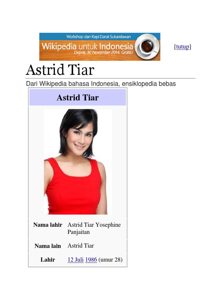 Profil Astrid Tiar Panjaitan Agama Terupdate. Astrid tiar atau lengkapnya astrid tiar yosephine panjaitan (lahir di jakarta, 12 juli 1986; Facebook insanlara paylaşma gücü vererek.