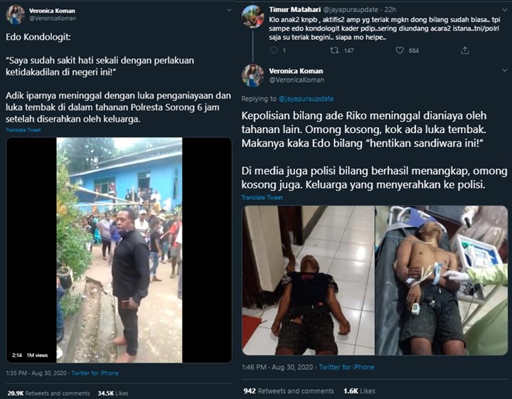 Musikus edo kondologit mengenang sosok mendiang glenn fredly sebagai seorang adik dan sahabat (foto: Peluru bersarang di kedua kakinya. Aktivis ham veronica koman, mengunggah kembali rekaman video tersebut di akun twitternya, minggu (30/8/2020).edo kondologit mengaku sakit hati karena adik iparnya meninggal.